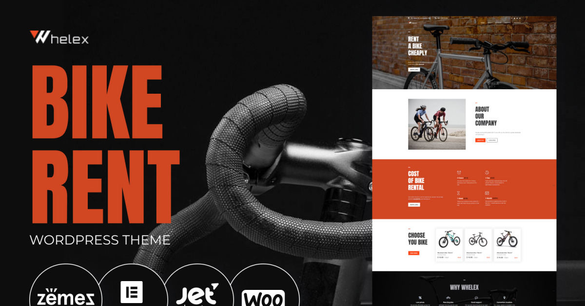 Whelex – WordPress Elementor Theme für Fahrradverleih-Websites für Fahrradunternehmen