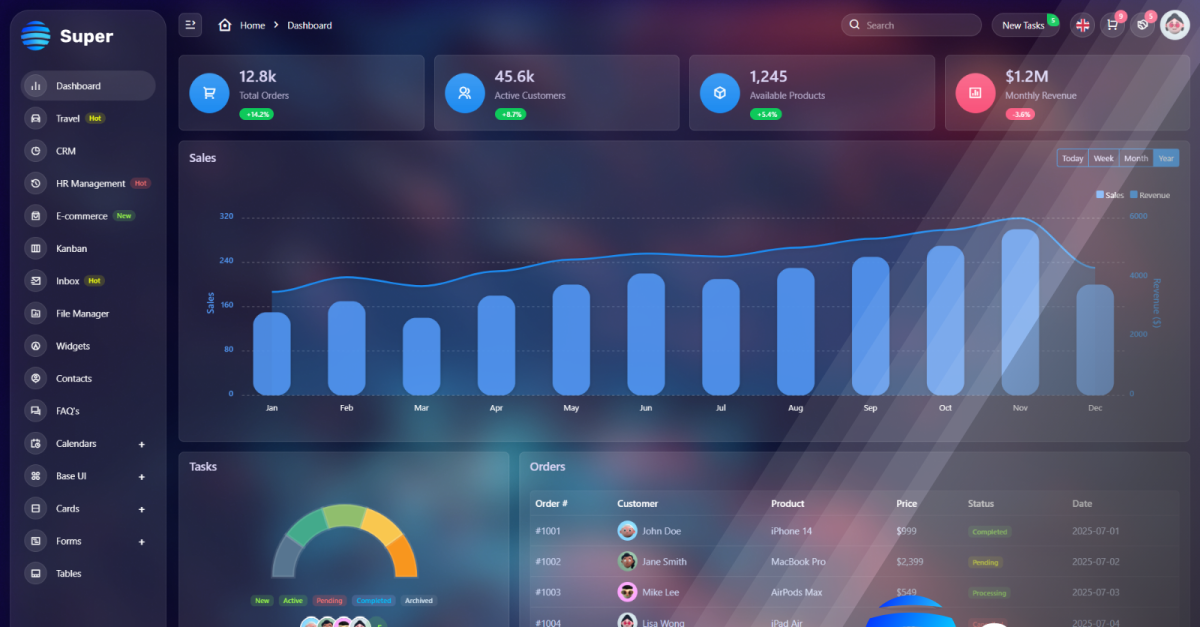 Super es una plantilla de panel de administración moderna y adaptable para Bootstrap 5 Emboss, diseñada para desarrolladores y empresas que buscan una interfaz clara e intuitiva para sus aplicaciones web. Centrada en la usabilidad y el rendimiento, Super ofrece un conjunto completo de funciones, incluyendo múltiples diseños de panel, herramientas de visualización de datos y diversos componentes de interfaz de usuario. Su diseño modular facilita la personalización, lo que la hace ideal para una amplia gama de aplicaciones, desde sistemas CRM hasta plataformas de comercio electrónico. Desarrollada con las últimas tecnologías web, Super garantiza una experiencia de usuario fluida en todos los dispositivos.