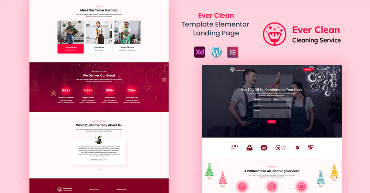 Ever Clean - Plantilla de página de destino de Elementor lista para usar de servicios de limpieza