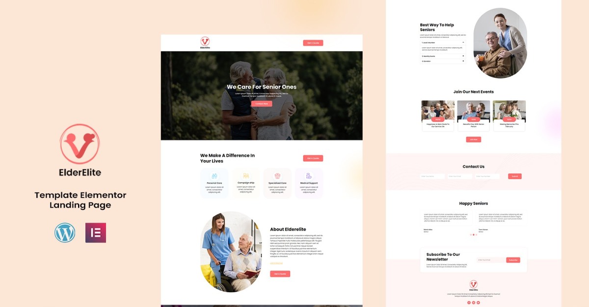 ElderElite - Plantilla de Elementor para servicios de atención domiciliaria