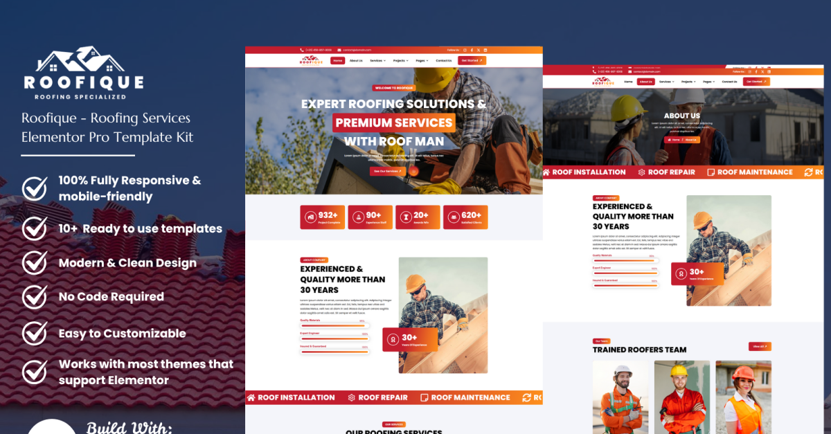Roofique – Kit de plantillas Elementor Pro para empresas de techado y servicios de exterior