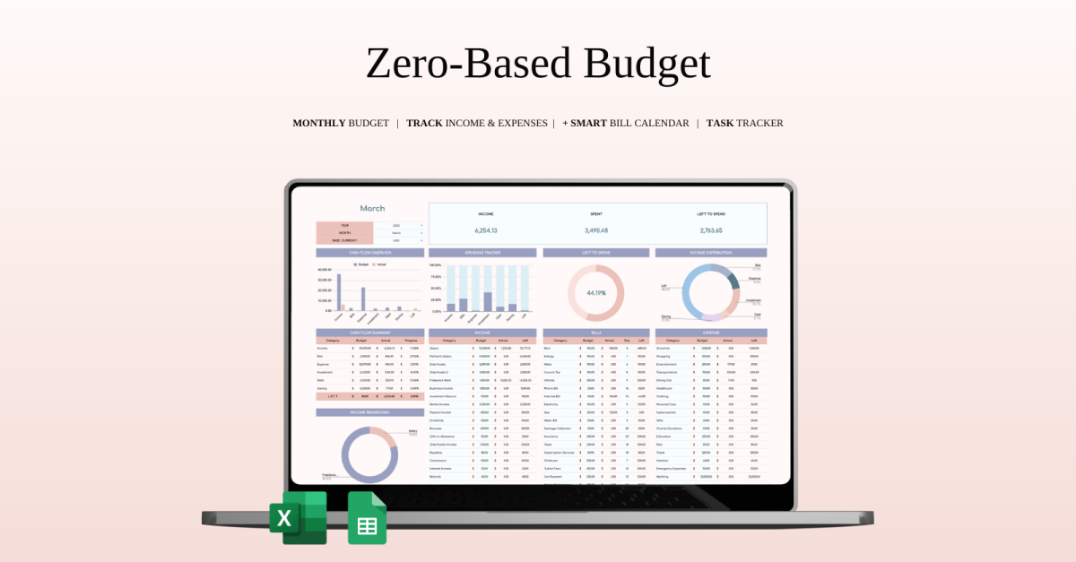 Plantilla de hoja de cálculo de presupuesto de base cero en Excel y Hojas de cálculo de Google