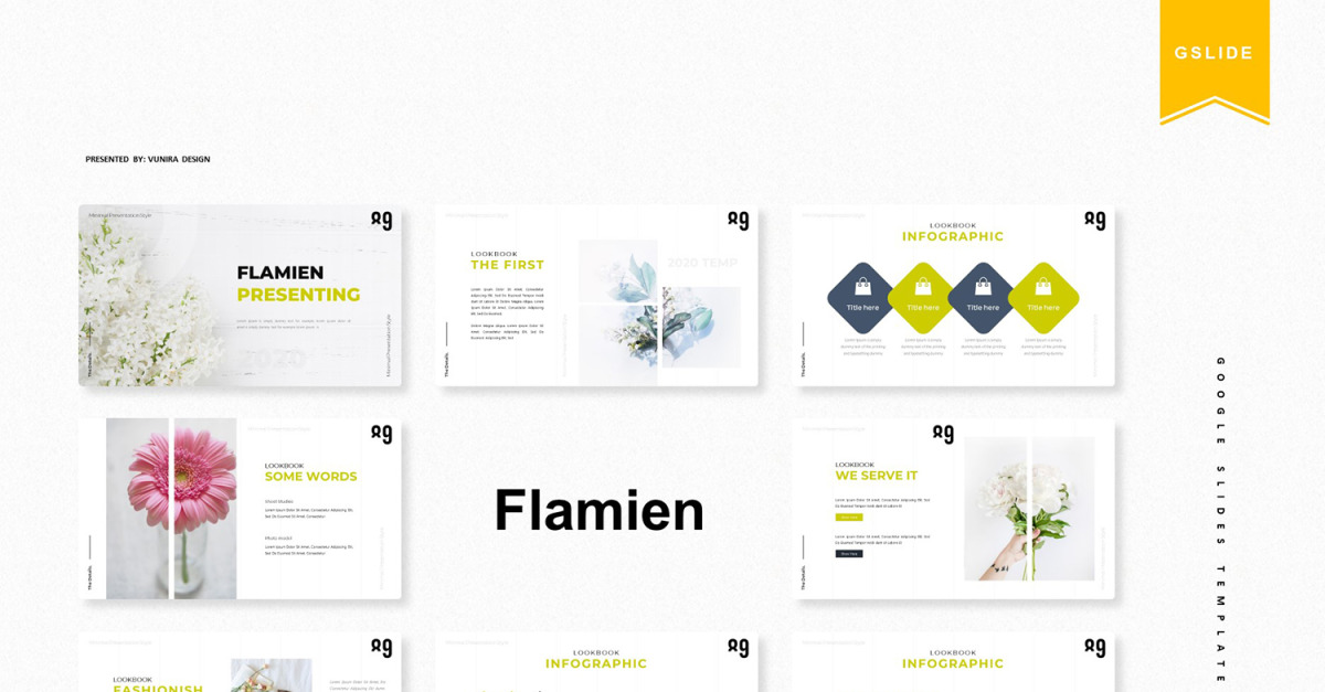 Este es **Flamien | Plantilla de Presentaciones de Google**: ¡Consígala ahora!, una excelente plantilla de Presentaciones de Google para todas las necesidades comerciales o personales.