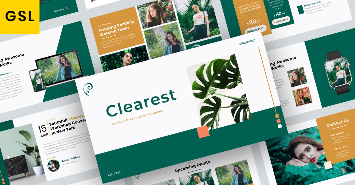 Presentamos **Clearest: plantilla de diapositivas de Google para empresas creativas**