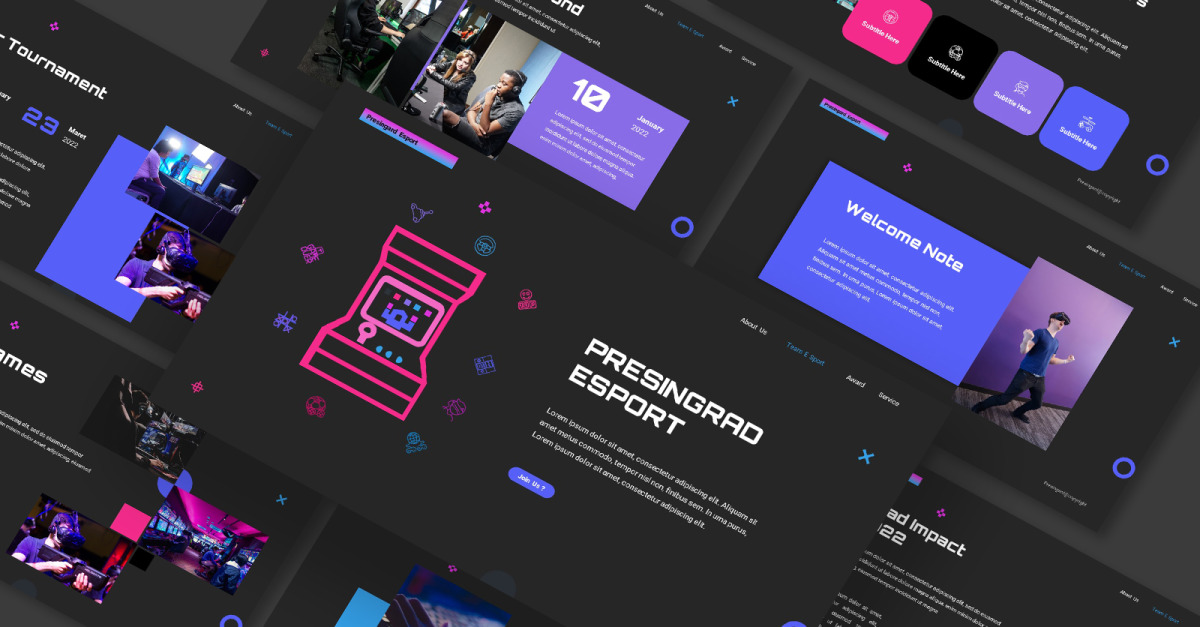 La plantilla de diapositivas de Google Gaming E-Sport es una plantilla de diapositivas de Google Gaming Studio multipropósito que se puede usar para cualquier tipo de presentación: negocios, cartera, corporativa, juego, estudio de juegos y también se puede usar para producción personalizada.