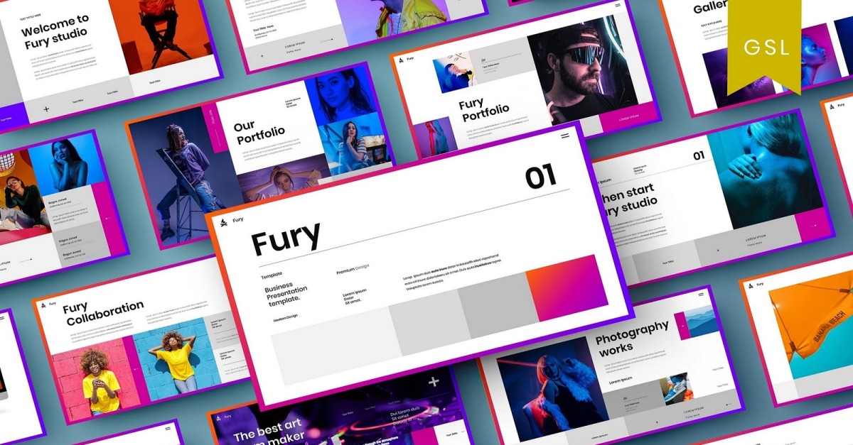Presentamos **Fury - Plantilla de diapositiva de Google empresarial**