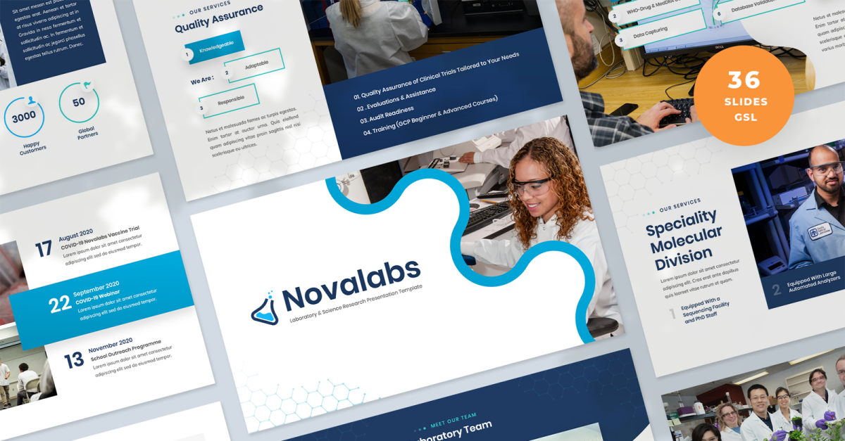 Novalabs - Plantilla de diapositivas de Google para presentación de investigación científica y de laboratorio
