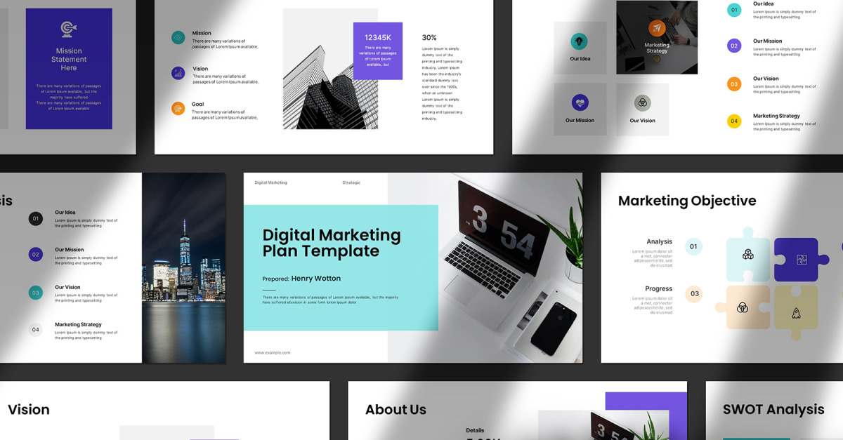 La plantilla de diapositivas de Google del plan de marketing digital le permite agregar su logotipo e imágenes y editar los colores y la tipografía de su marca y listo. No pierdas el tiempo, hemos hecho todo el trabajo duro por ti.