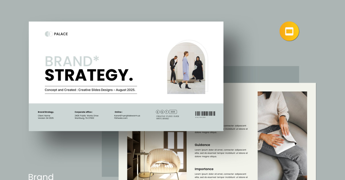 Presente sus trabajos de forma limpia y profesional con la plantilla de presentación Estrategia de marca. Este es un diseño simple, contemporáneo pero poderoso que incluye diseños fotográficos creativos, infografías, tablas, íconos vectoriales, diagramas y toneladas de características excelentes para mostrar su trabajo y el perfil de su empresa en otro nivel.