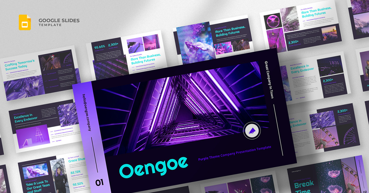 Oengoe - Plantilla de diapositivas de Google en negro y morado