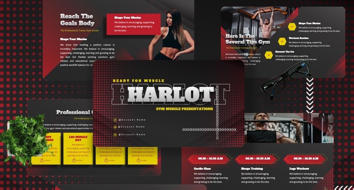 Presentamos Harlot - Plantillas de diapositivas de Google para músculos de gimnasio