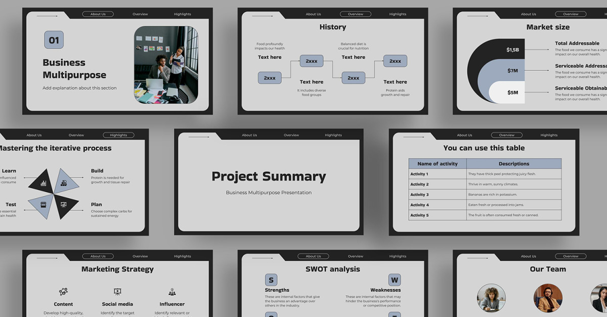Presentamos las diapositivas multipropósito de Google con resumen del proyecto