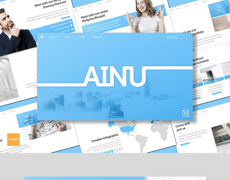 Ainu - Plantilla de presentación es una plantilla de presentación minimalista, creativa y única para empresas comerciales o uso personal, industria creativa, negocios y muchos más. Si está buscando un diseño único y diferente con una presentación profesional, ¡obtenga esta presentación ahora!