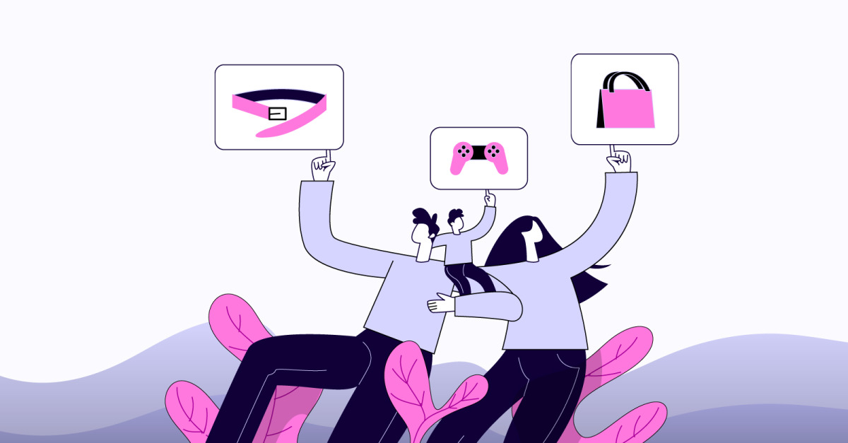 Familia feliz de compras en vector de concepto de ilustración de tienda de moda en línea