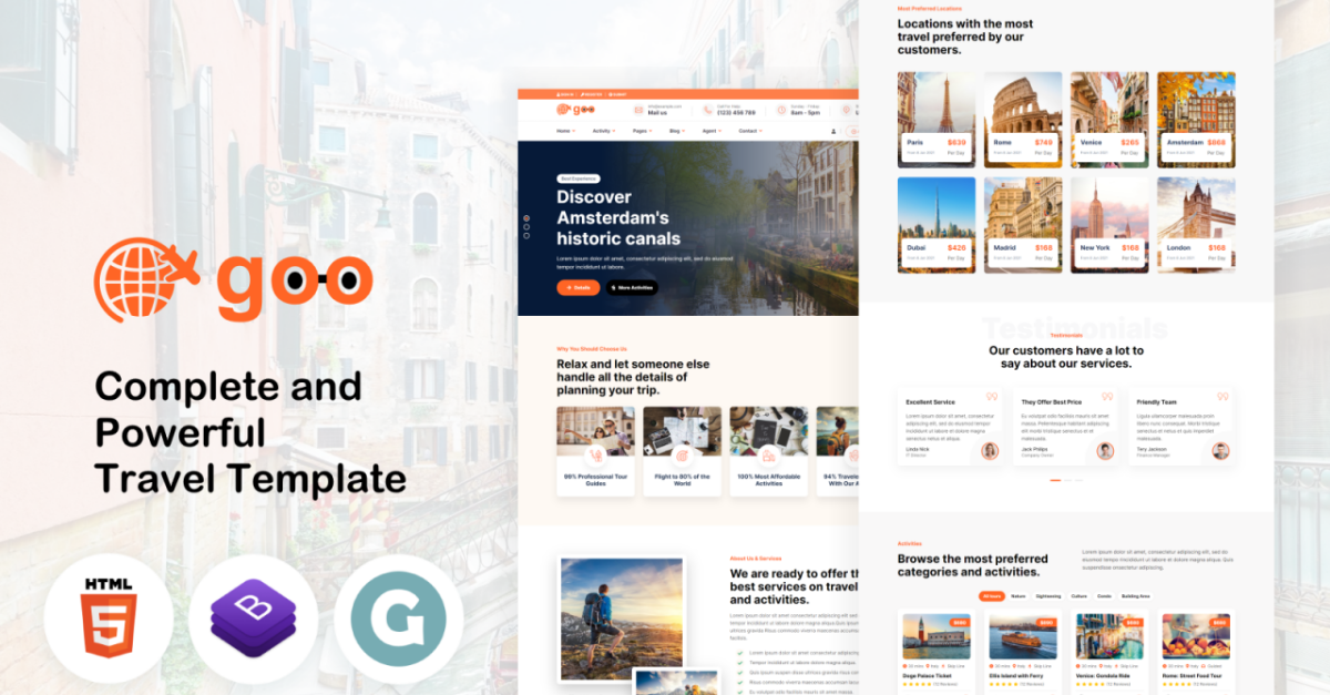 Goo Travel - Plantilla de sitio web para agencias y reservas de viajes