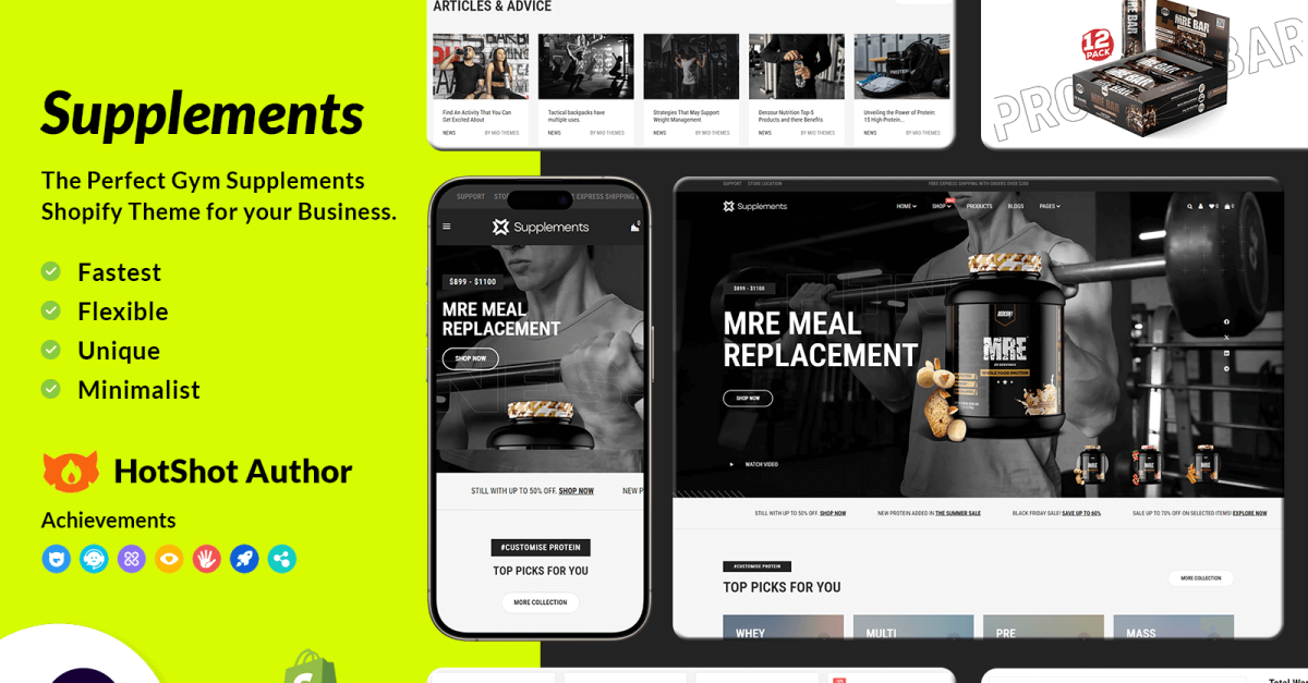 Nos complace presentar Supplements, un tema único de Shopify diseñado específicamente para ropa deportiva y artículos de fitness. Tanto si eres un profesional del fitness, un instructor de yoga o si buscas crear un sitio web impactante para tu gimnasio o centro de fitness, Supplements es la solución perfecta.