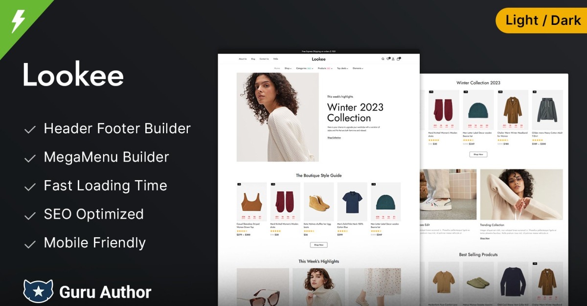 Lookee de TemplateMela es un sofisticado y elegante tema de WooCommerce diseñado para tiendas de moda, joyerías y accesorios. Ya sea que vendas joyería de alta gama, ropa de moda, artículos de viaje o ropa interior masculina, Lookee ofrece la combinación perfecta de elegancia y funcionalidad para exhibir tus productos con estilo. Creado con Elementor , este tema permite una personalización completa, permitiéndote diseñar la tienda de tus sueños sin esfuerzo, ¡sin necesidad de programar!