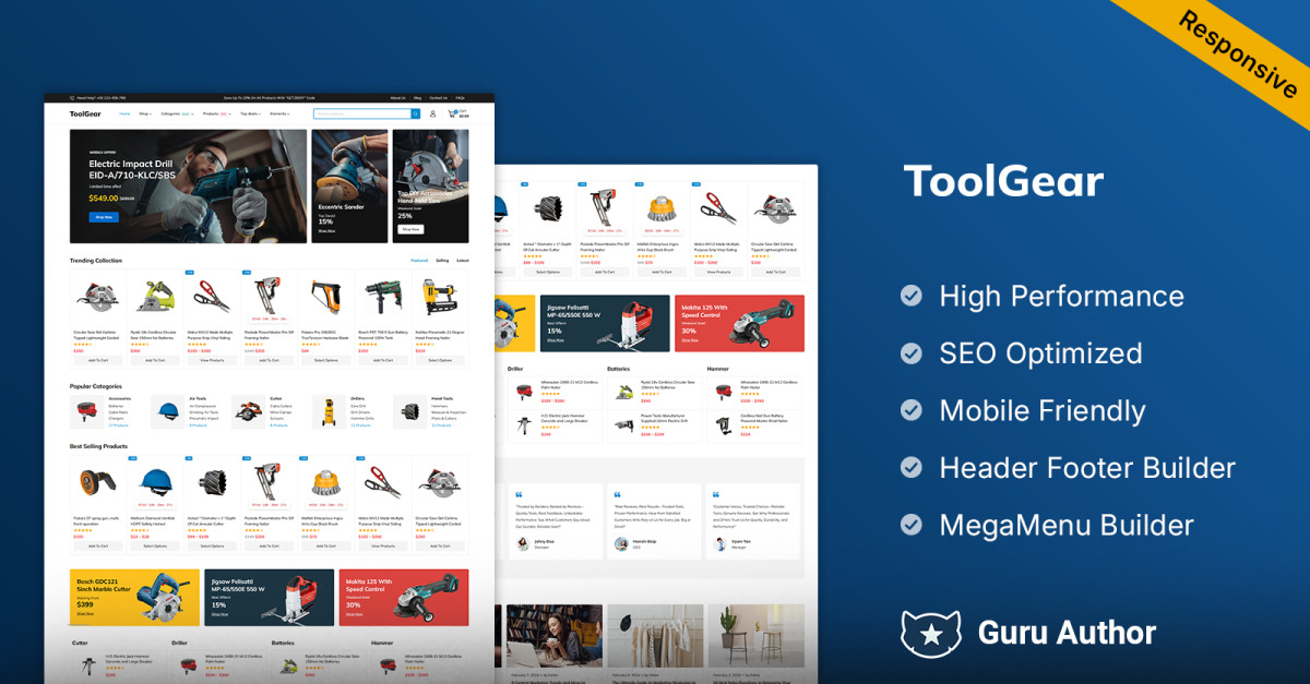 Gestionar una tienda online de herramientas y equipos puede ser un reto. Los clientes esperan una experiencia de compra fluida, una navegación sencilla y un acceso rápido a la información del producto. Toolgear soluciona estos retos ofreciendo un tema WooCommerce moderno y versátil, diseñado específicamente para tiendas de herramientas, repuestos y equipos .