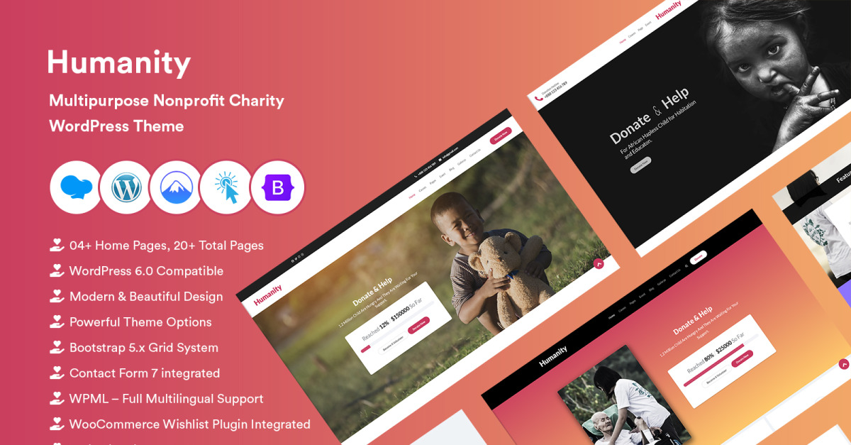 es un tema de WordPress de caridad y donación que se adapta a todo tipo de sitios web de caridad, recaudación de fondos, organizaciones sin fines de lucro, ONG, trabajo social y otros sitios web sin fines de lucro para todas sus necesidades. Repleto de elementos perfectos para la recaudación de fondos, así como un conjunto de diseños de página de inicio flexibles para organizaciones benéficas y donaciones y compatibilidad total con Elementor Page Builder. El tema es compatible con el complemento de donación más popular, GiveWP. Give es el complemento mejor calificado y más descargado. Tiene uno de los mejores soportes como complemento de donación para WordPress. Con Giving puede aceptar fácilmente obsequios benéficos a través de formularios de donación personalizables.