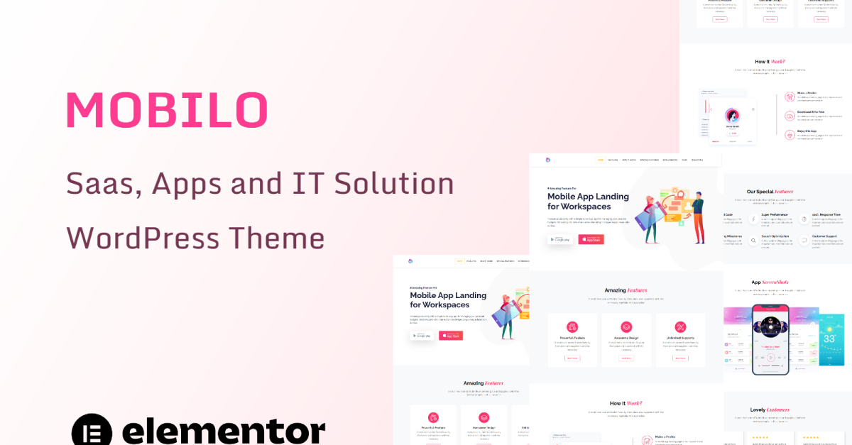 Mobilo - SaaS, aterrizaje de aplicaciones y solución de TI Tema de WordPress de una página