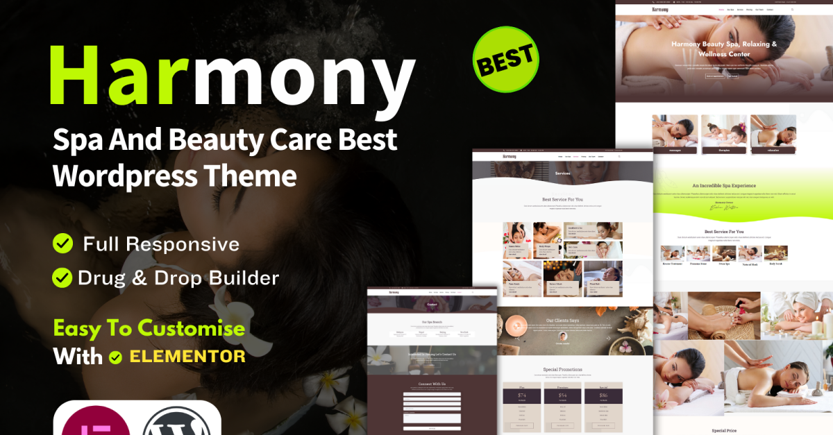 Tema de WordPress para salón de spa Harmony Beauty Care