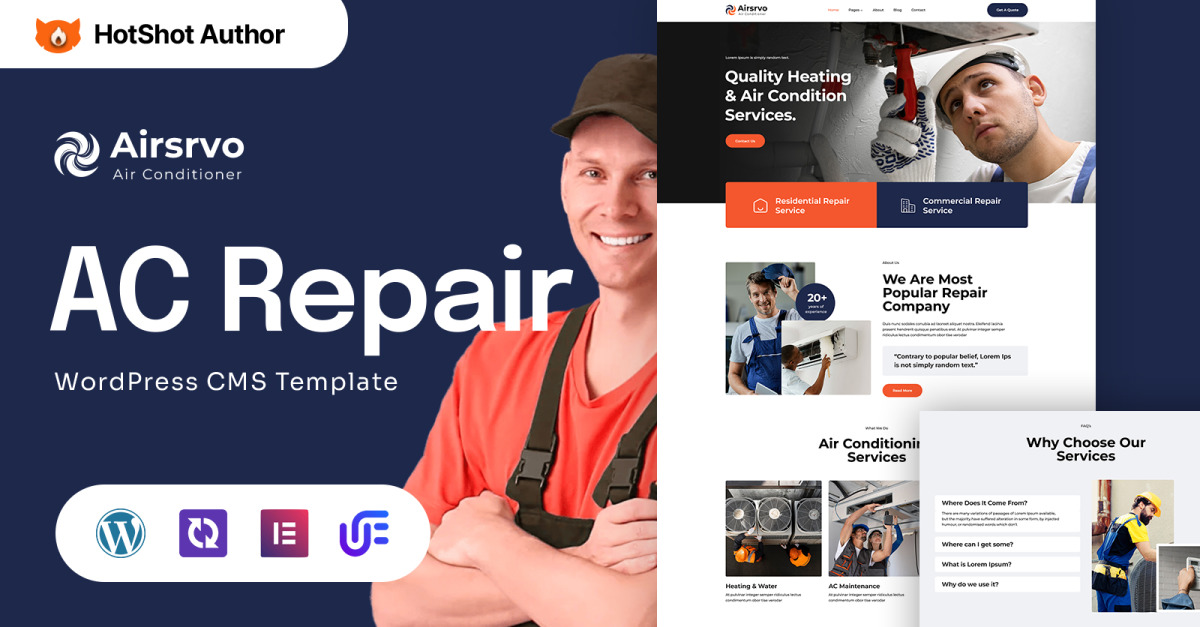Airsrvo - Tema de WordPress Elementor para reparación y calefacción de aire acondicionado