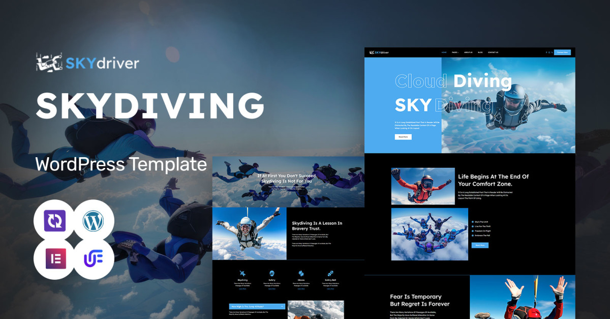 SkyDriver es una plantilla de WordPress dinámica, visualmente impactante y con muchas funciones diseñada específicamente para empresas de paracaidismo, entusiastas de los deportes de aventura y proveedores de experiencias extremas. Diseñada con una estética impresionante, esta plantilla captura la emoción del paracaidismo y ofrece una combinación perfecta de funcionalidad y elegancia para crear sitios web de alto impacto que se destaquen entre la multitud.