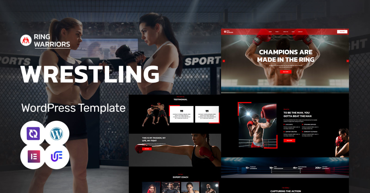 Ring Warriors - Tema Elementor de WordPress para academia de lucha, artes marciales y entrenamiento