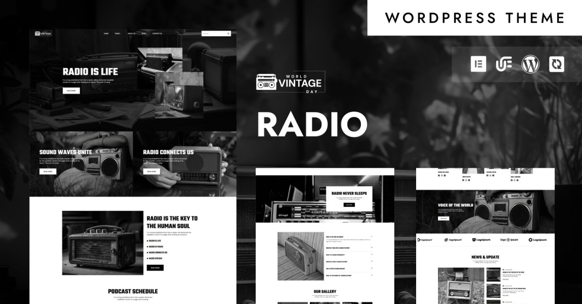 Vintage - Tema Elementor de WordPress para transmisión y transmisión de radio