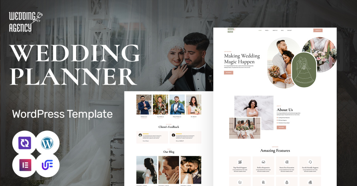 Agencia de bodas: tema Elementor de WordPress para organizadores de bodas y gestión de eventos