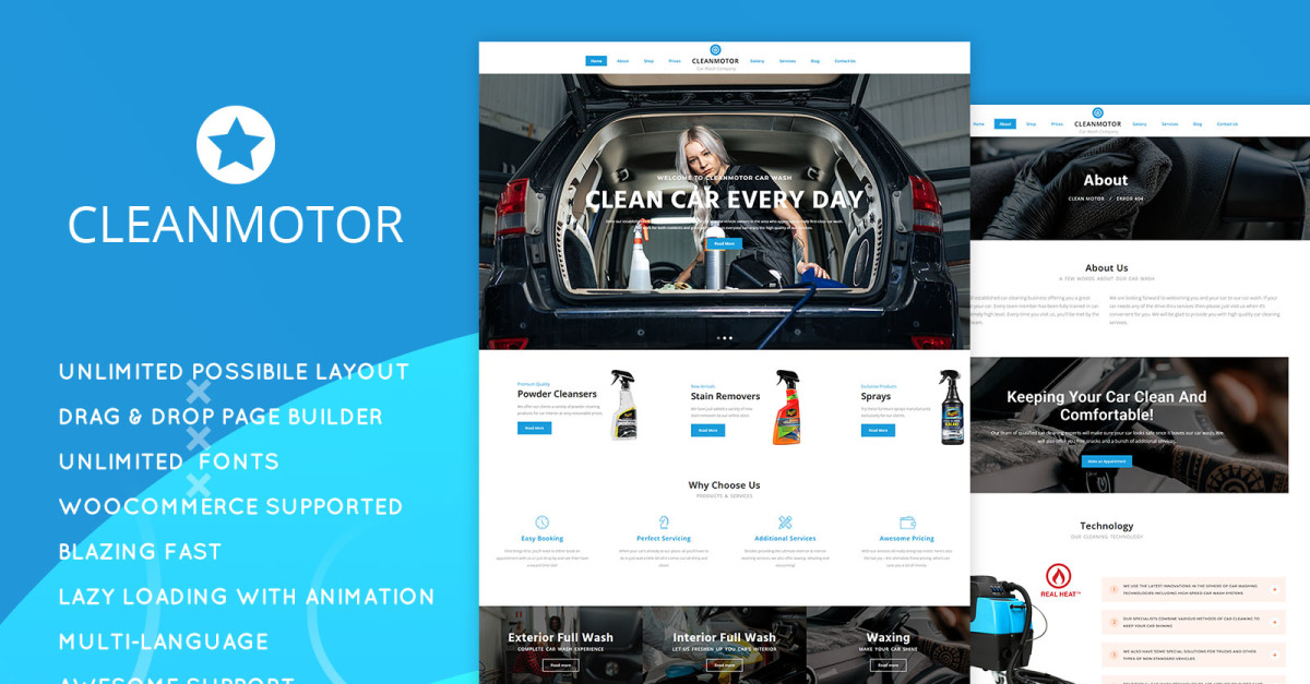 CleamMotor cuenta con un sistema de navegación intuitivo, botones de llamada a la acción atractivos y visuales impactantes que ayudan a convertir visitantes en clientes. Ya sea que gestiones un pequeño lavadero de autos local o un gran servicio de detallado, este tema proporciona la presencia digital perfecta para tu marca.
