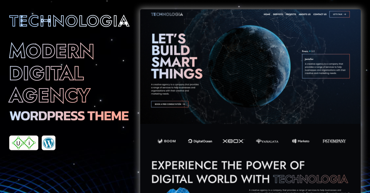 Technologia – El tema de WordPress para agencias digitales y startups tecnológicas está diseñado específicamente para agencias que desean expandir su presencia online con estilo y confianza. Desde startups y empresas SaaS hasta consultoras de TI y estudios creativos, este tema les ayuda a transmitir un mensaje impactante y sofisticado, a la vez que es rápido, responsivo y optimizado para SEO.