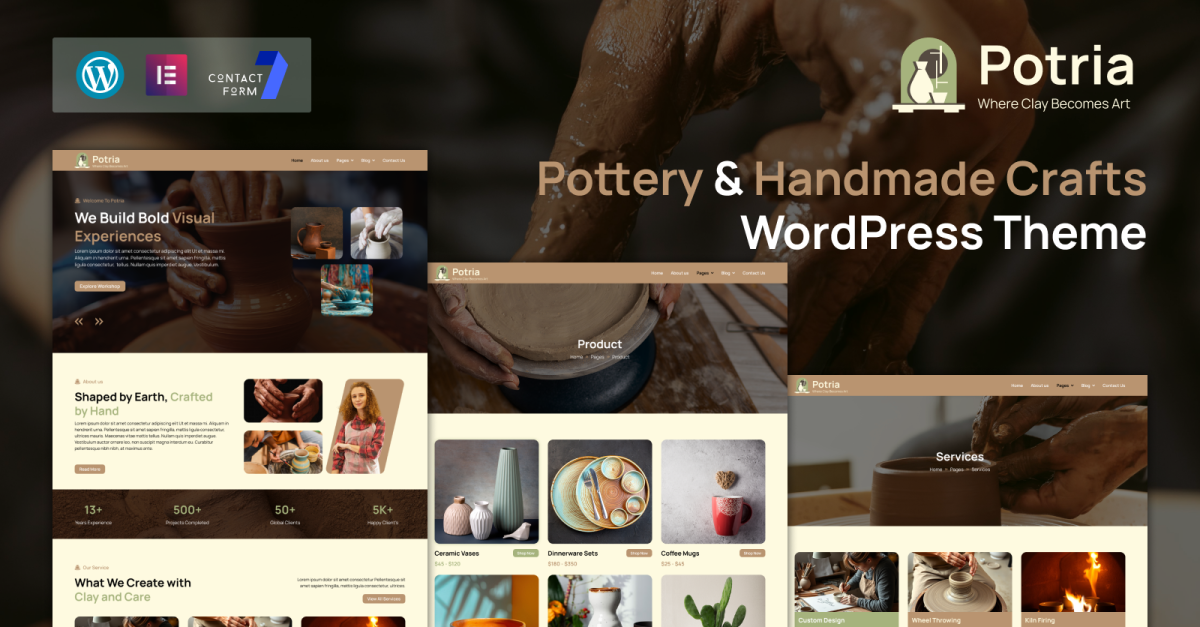 Potria es un tema elegante y sencillo para WordPress, diseñado para artistas de cerámica, estudios de cerámica, vendedores de productos de arcilla y artesanos. Con sus tonos suaves, estilo artesanal y diseño limpio, te ayuda a llevar la calidez de tu trabajo online, ya sean vasijas de barro, objetos esculpidos o artículos para el hogar hechos a mano.