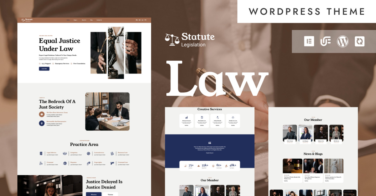 Construya su reputación profesional en línea con Statute, el tema de WordPress más poderoso, elegante y flexible para profesionales legales.