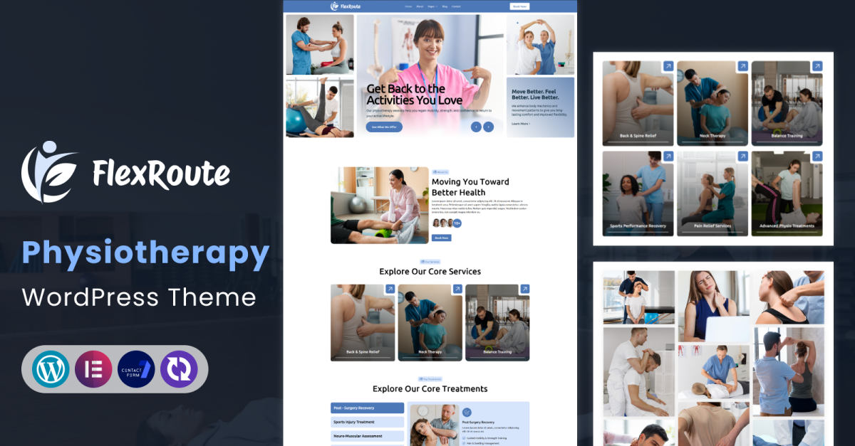 FlexRoute es un tema moderno y profesional de WordPress diseñado para clínicas de fisioterapia, centros de rehabilitación, consultorios médicos y servicios de bienestar. Con un diseño limpio y orientado al usuario, ayuda a los profesionales de la salud a presentar sus servicios, tratamientos, planes de recuperación y testimonios de pacientes con claridad y confianza.