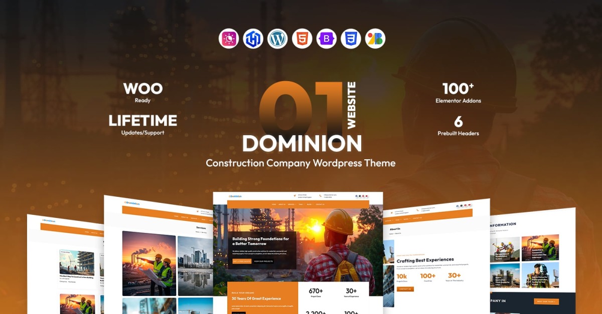 Dominion es un tema de WordPress potente, moderno y muy flexible, diseñado para sitios web profesionales y de alto rendimiento. Diseñado con un enfoque especial en los sectores de la construcción e industrial, Dominion es perfecto para agencias, startups, productos SaaS, proyectos de criptomonedas, tiendas de un solo producto, consultoras, empresas de TI, portafolios, institutos y sitios web multipropósito en general.