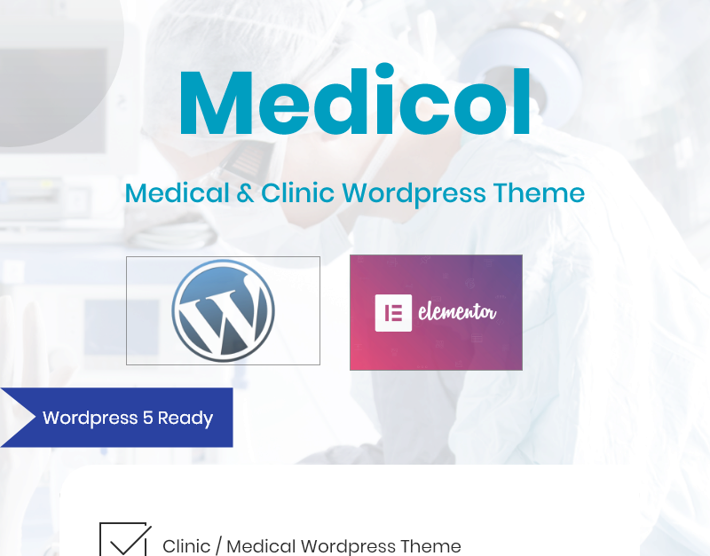 Medicol - Tema responsivo de Wordpress. Es muy fácil de personalizar y todo el diseño se basa en el generador de páginas de Elementor. Importe todo el diseño de demostración (igual que la vista previa) con solo 1 clic. Sin ningún conocimiento de codificación, puede agregar/personalizar páginas, contenidos, imágenes, etc. Este tema utiliza códigos CSS y Jquery minificados y códigos optimizados, por lo que obtendrá un sitio web de carga rápida.