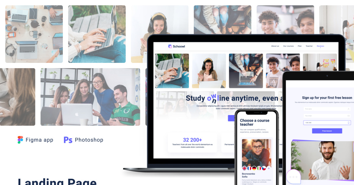 Schoowl - Plantilla de interfaz de usuario de página de destino de educación y cursos en línea mínimos