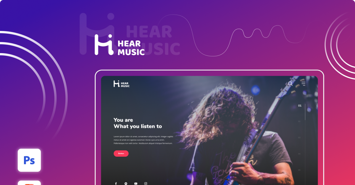 Escuche música: elementos de interfaz de usuario elegantes y multipropósito de la compañía de música