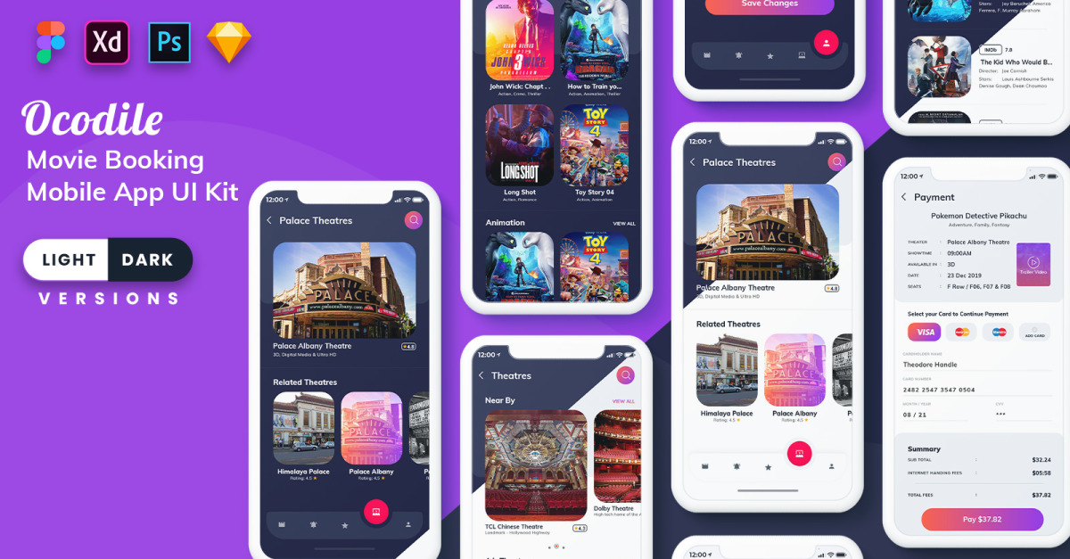 Ocodile-Movie Booking MobileApp UI Kit (claro y oscuro)