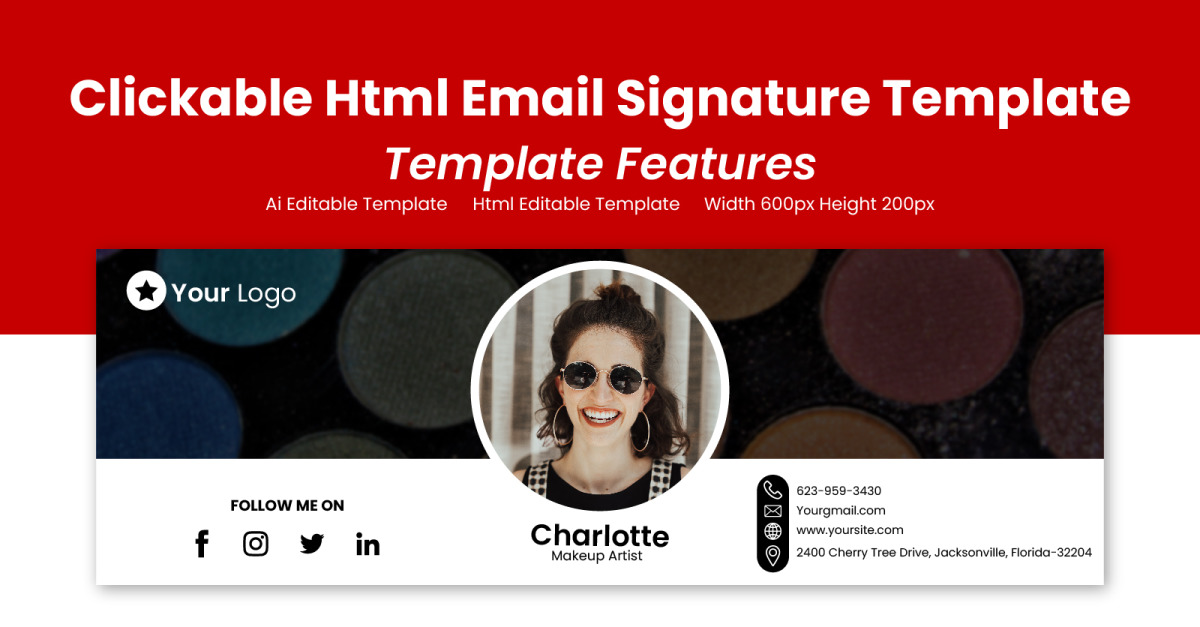 Diseño de correo electrónico de firma Html: plantilla de firma Html en la que se puede hacer clic 10 € Descargue