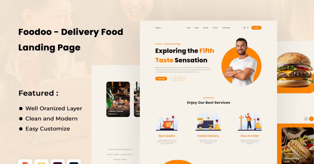 Página de inicio de entrega de comida de Foodoo - Características Imagen 1