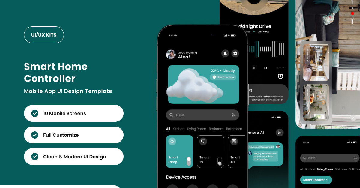 Roomiq – Plantilla de diseño de interfaz de usuario para la aplicación de control de habitaciones 14 € Descargue