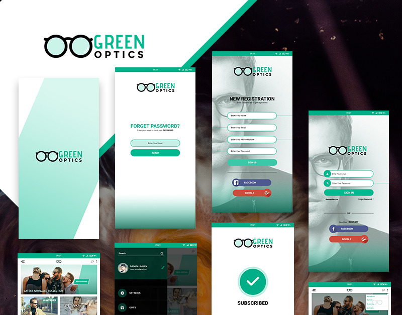 GreenOptics - Elementos de la interfaz de usuario PSD de la aplicación de la tienda de especificaciones