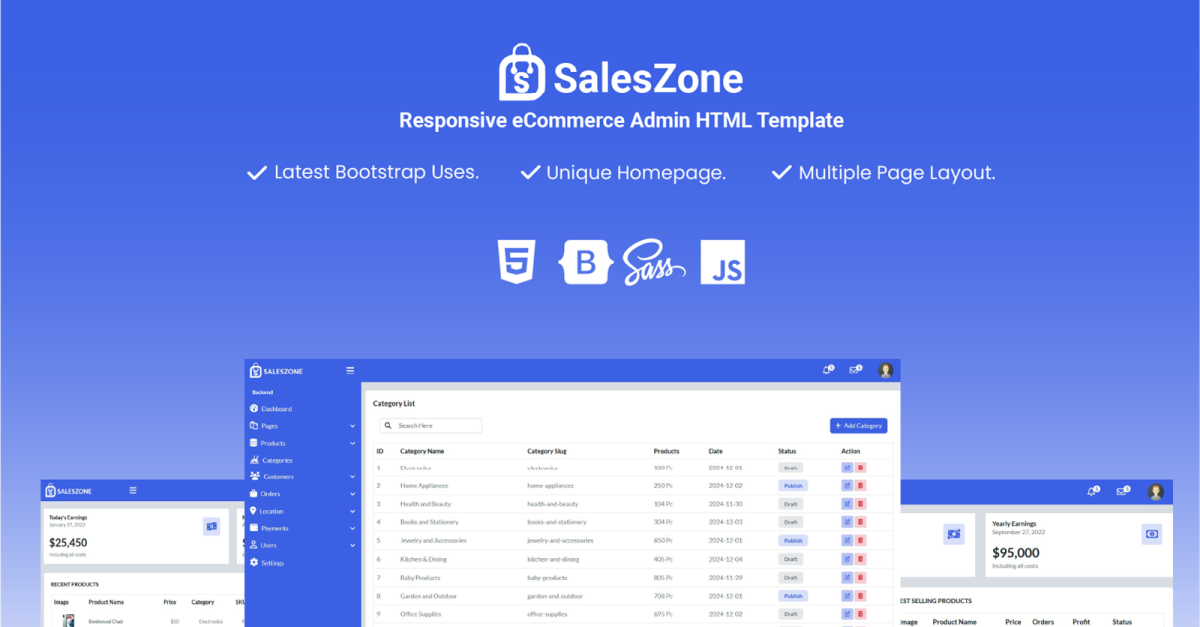 SalesZone - Modèle d'administration HTML réactif pour le commerce électronique