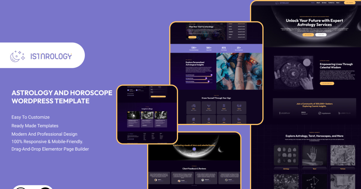 Istarology - Kit de modèles Elementor pour l'astrologie et l'horoscope ésotérique