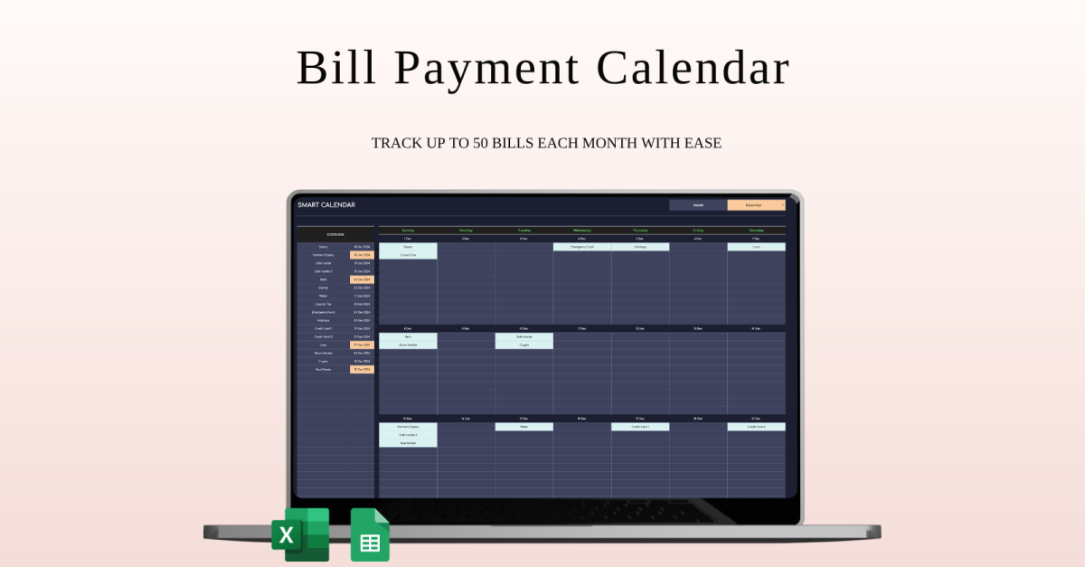 Modèle de calendrier de paiement de factures Excel et Google Sheets