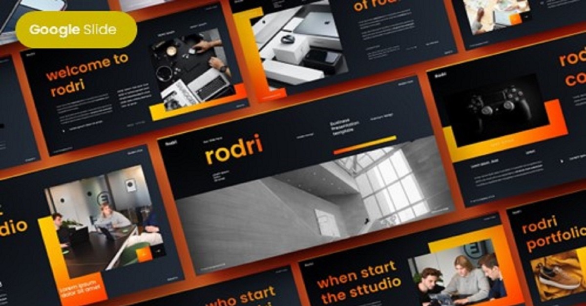 Présentation de **Rodri - Modèle de diapositives Google pour les entreprises**