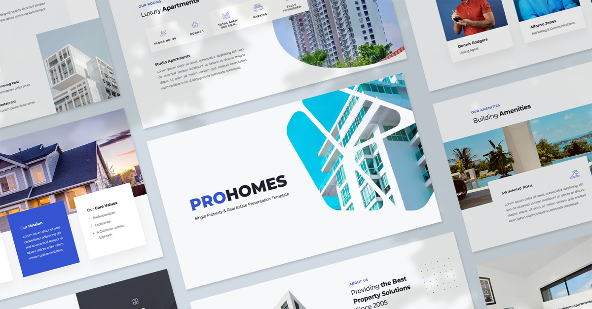 Prohomes - Modèle Google Slides de présentation des propriétés et de l'immobilier