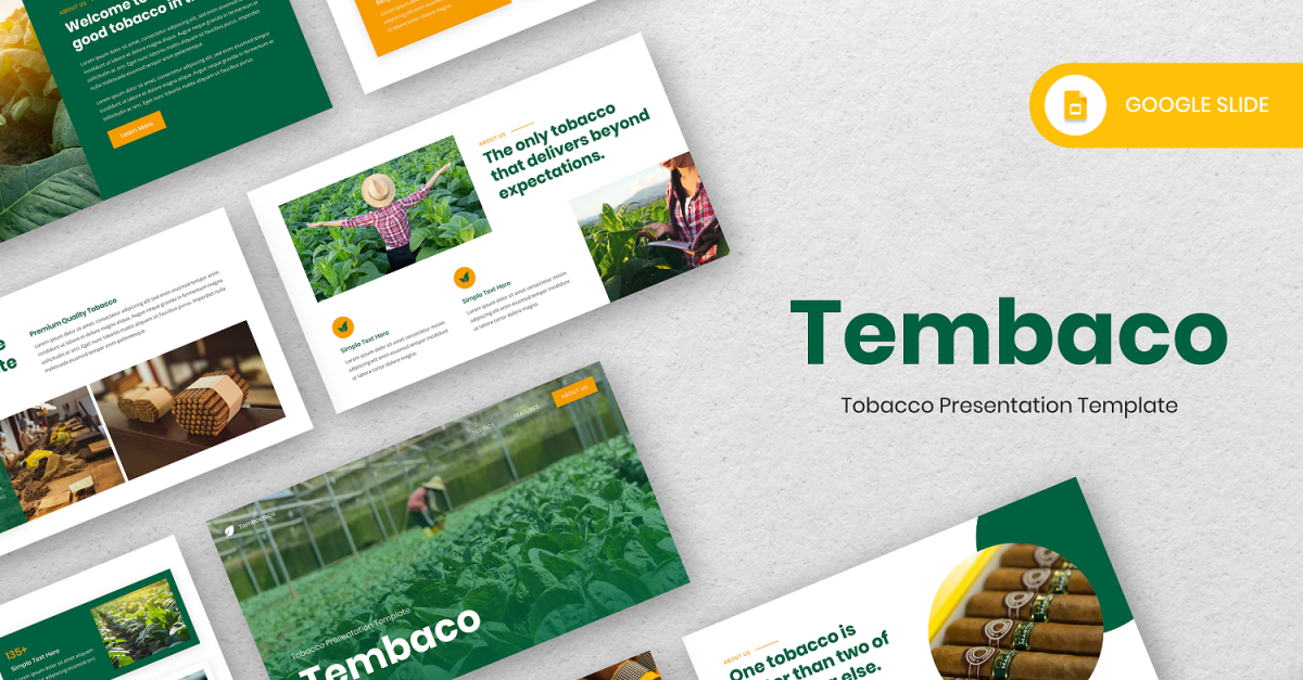 Présentation de **Tembaco - Modèle de diapositive Google sur le tabac**